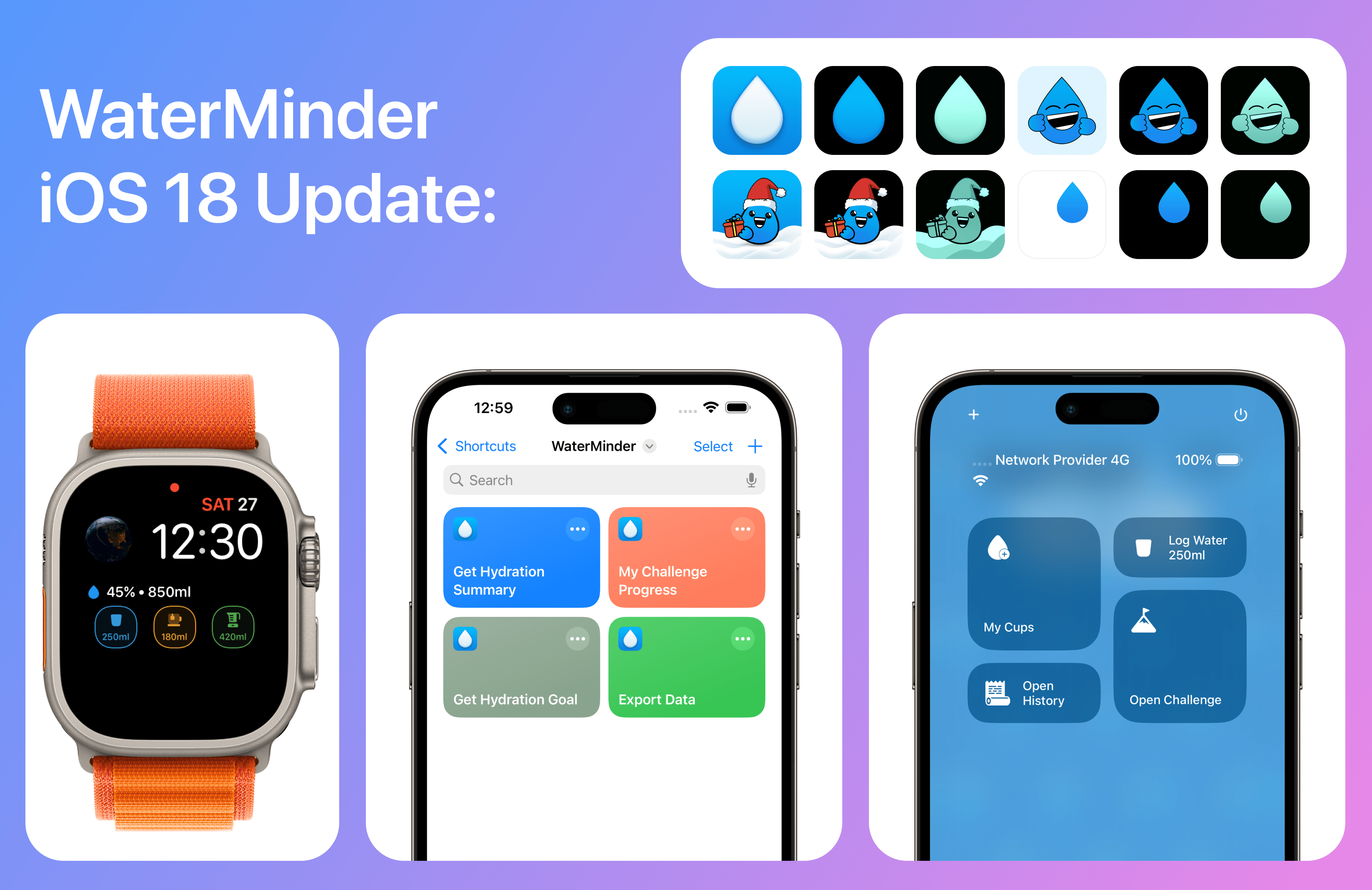 If you’re excited to try out the new themes, shortcuts, or widgets, update your WaterMinder app today and enjoy a more refined hydration experience in iOS 18!